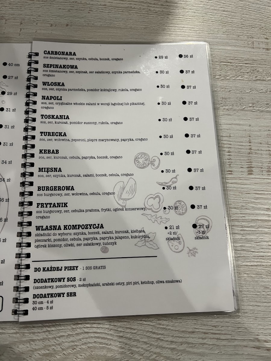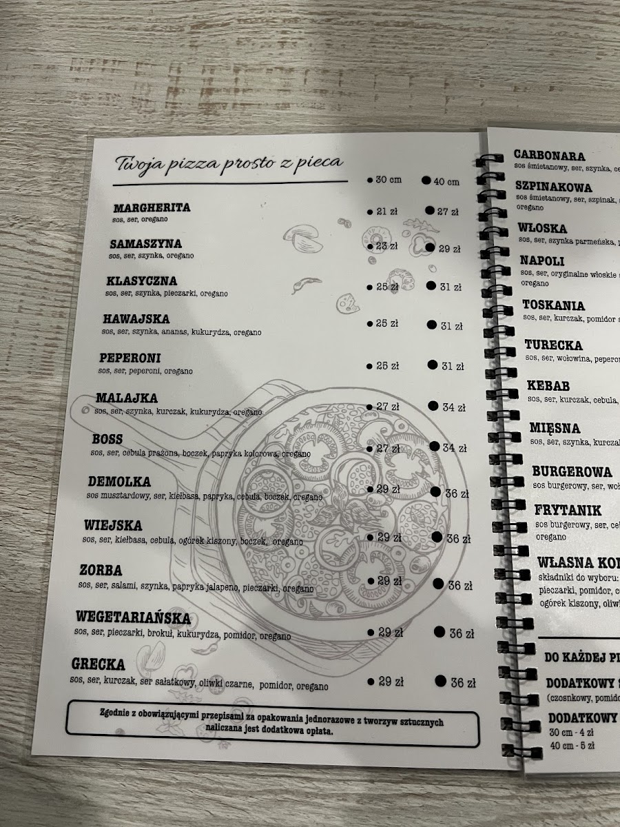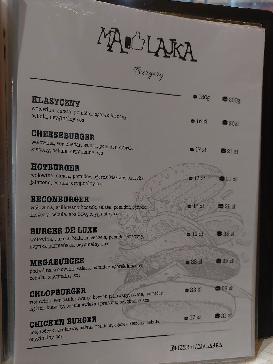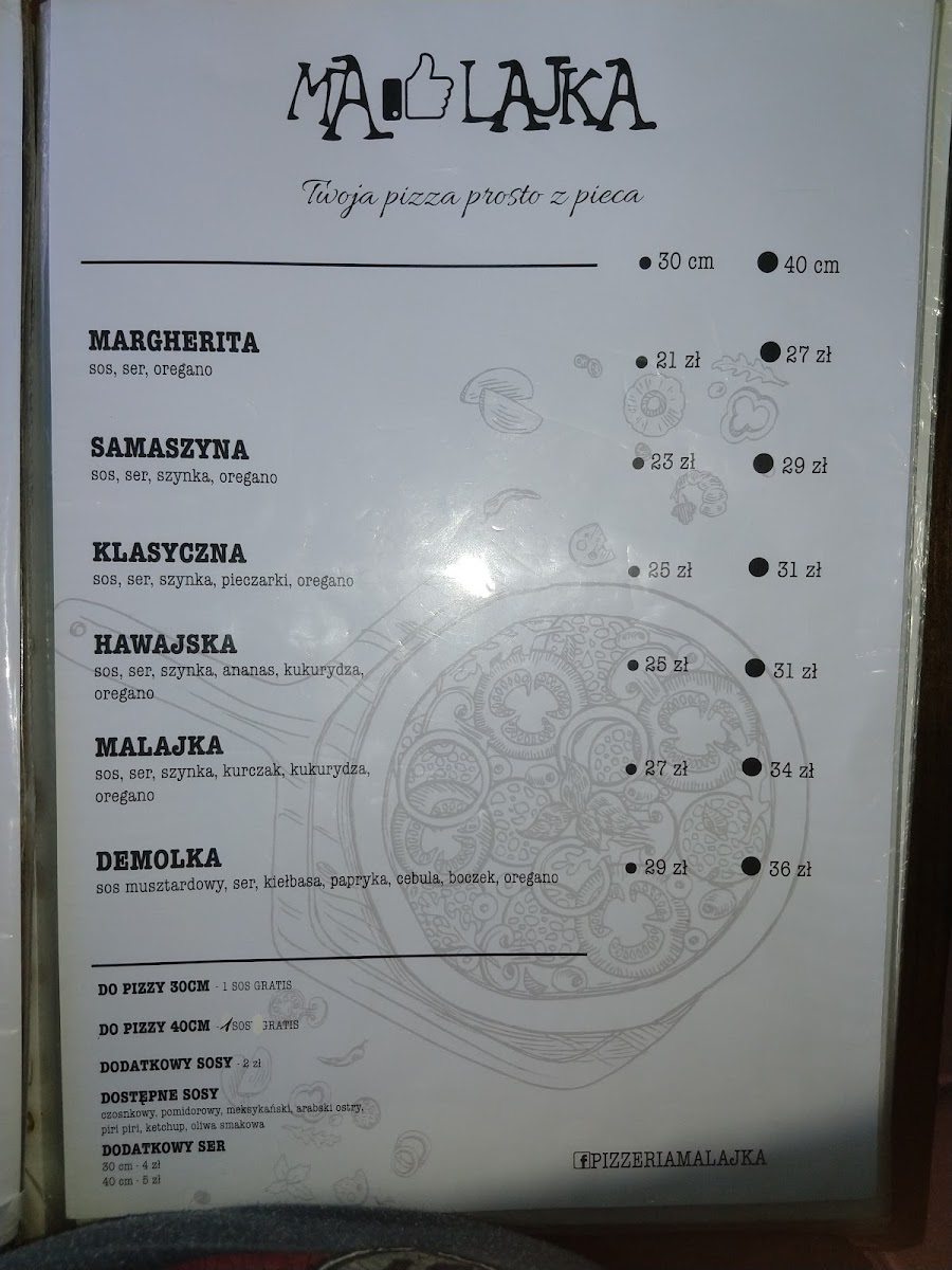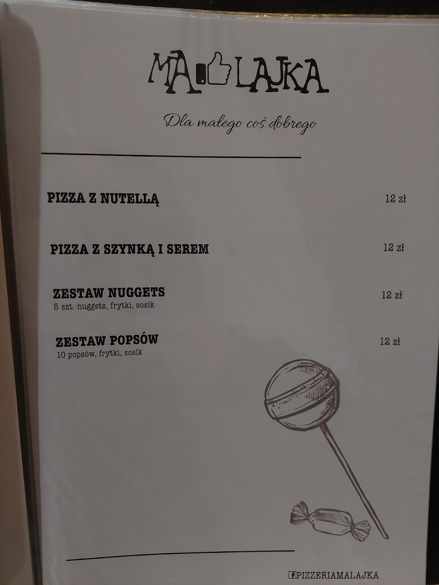 MaLajka offers a straightforward, comforting menu centered around classic pizza and hearty casual meals. The selection is ideal for those looking to enjoy a relaxed lunch or a cozy dinner, whether dining in or taking food to go. You’ll find a variety of pizzas, from large Italian-style options to smaller, unique choices like the Chorizo or Pizza with Nutella for a touch of sweetness.